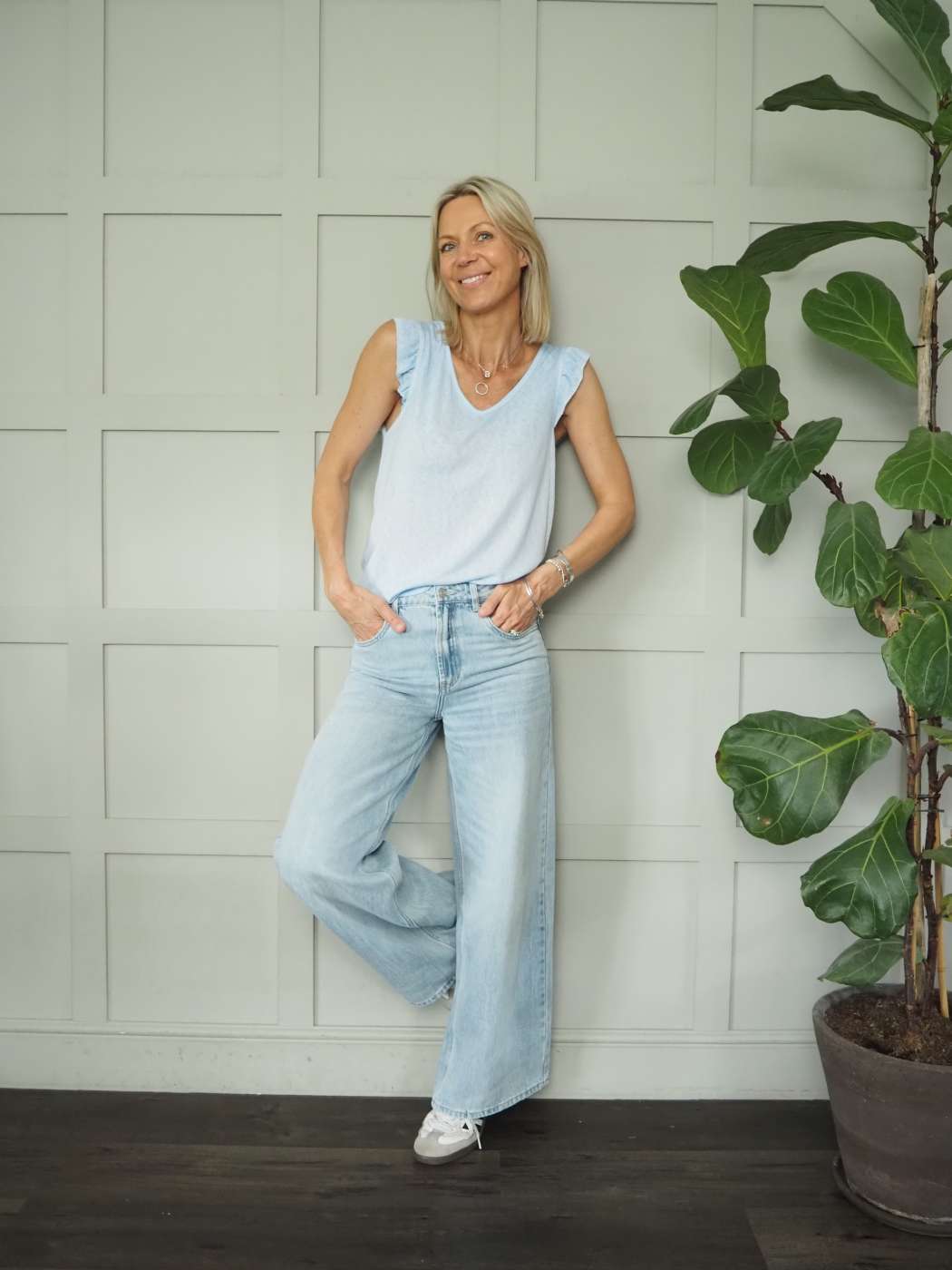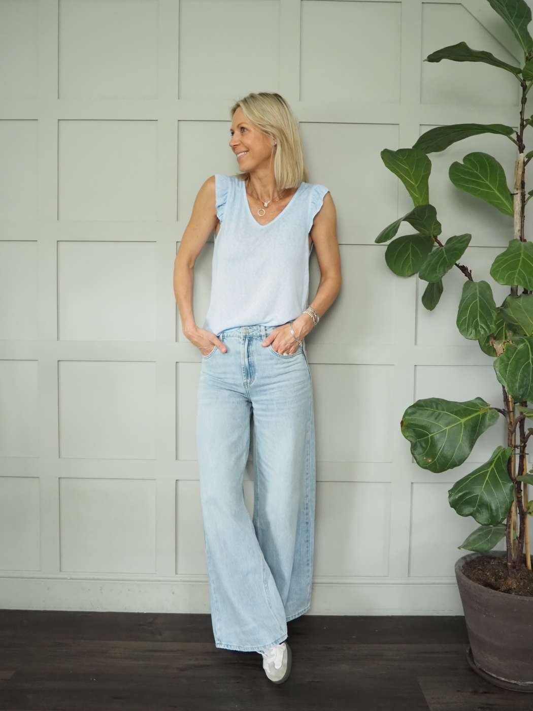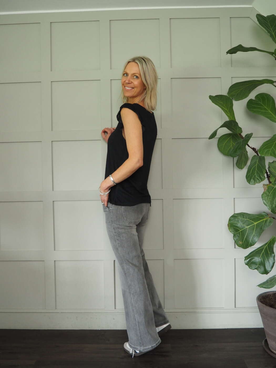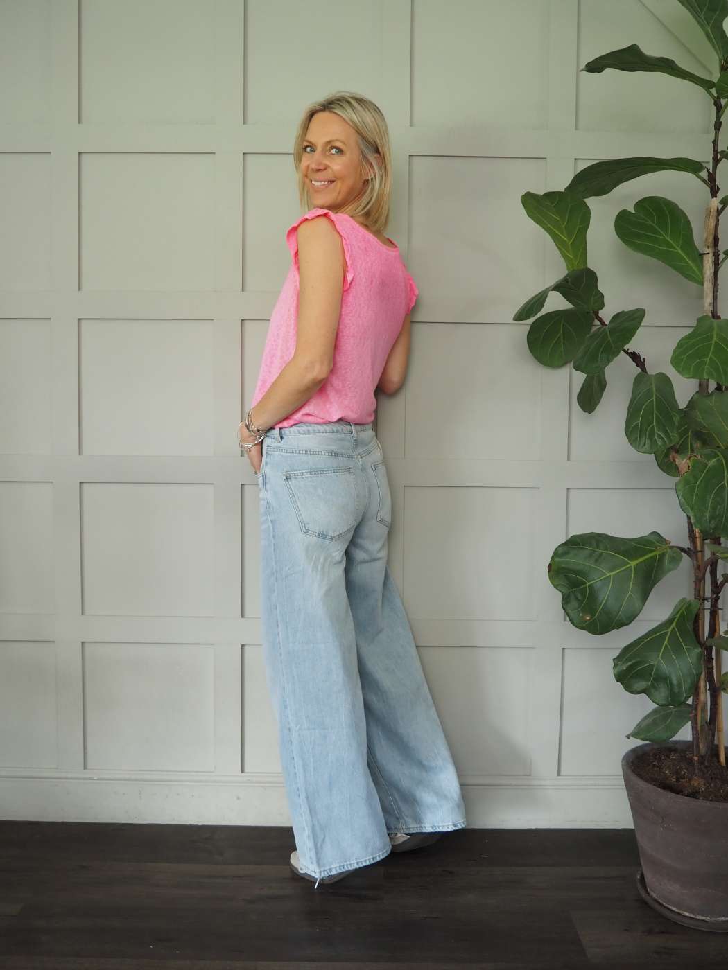 Classic T Shirt, this is just a true wardrobe must-have! It has a v neck and frilly capped sleeves and is a relaxed shape.