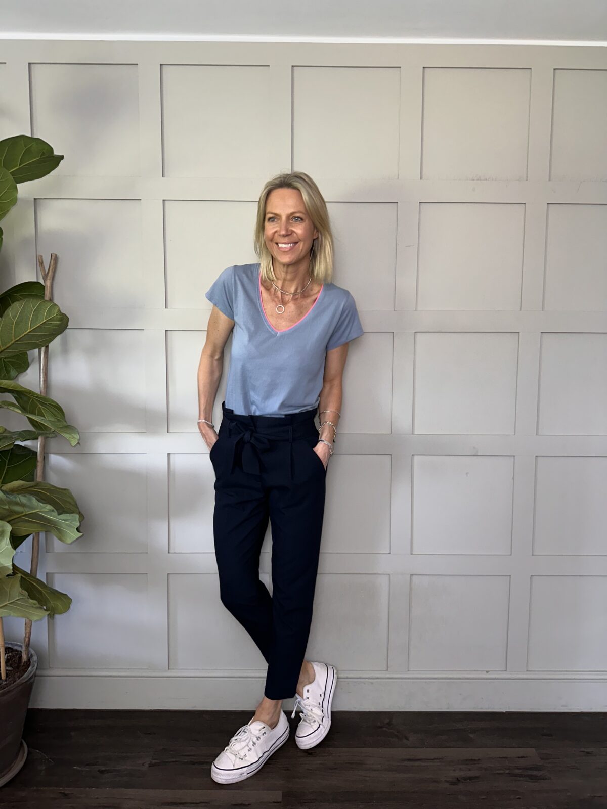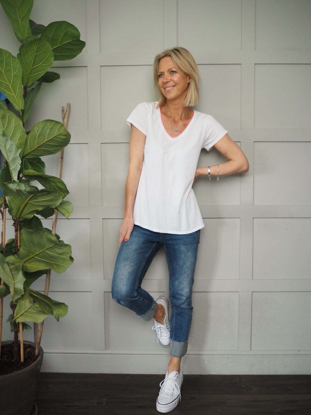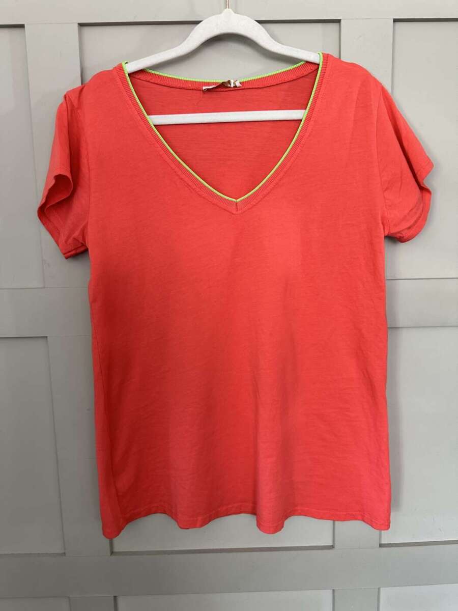 These fun V neck T Shirts with contrasting trim are perfect for the spring and summer. They are perfect for wearing with skirts, jeans or shorts and look great layered under a blazer.