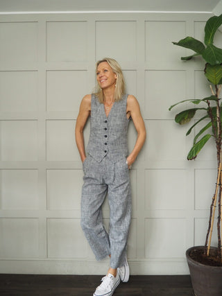 Nettas Linen Mix Trousers by Part Two - Dark Navy Blue, Oatmeal