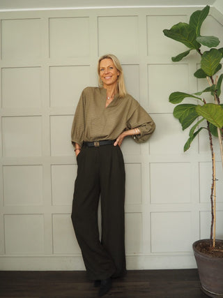 Genette Wide Leg Tailored Trousers by Moss Copenhagen - Dark Khaki Green