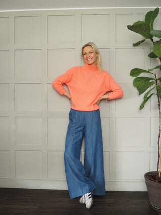 Zixuan Wide Leg Chambray Style Trousers with Elasticated Waist - Denim Blue