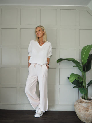 Jaclyn Wide Leg Trousers by Saint Tropez - Ecru