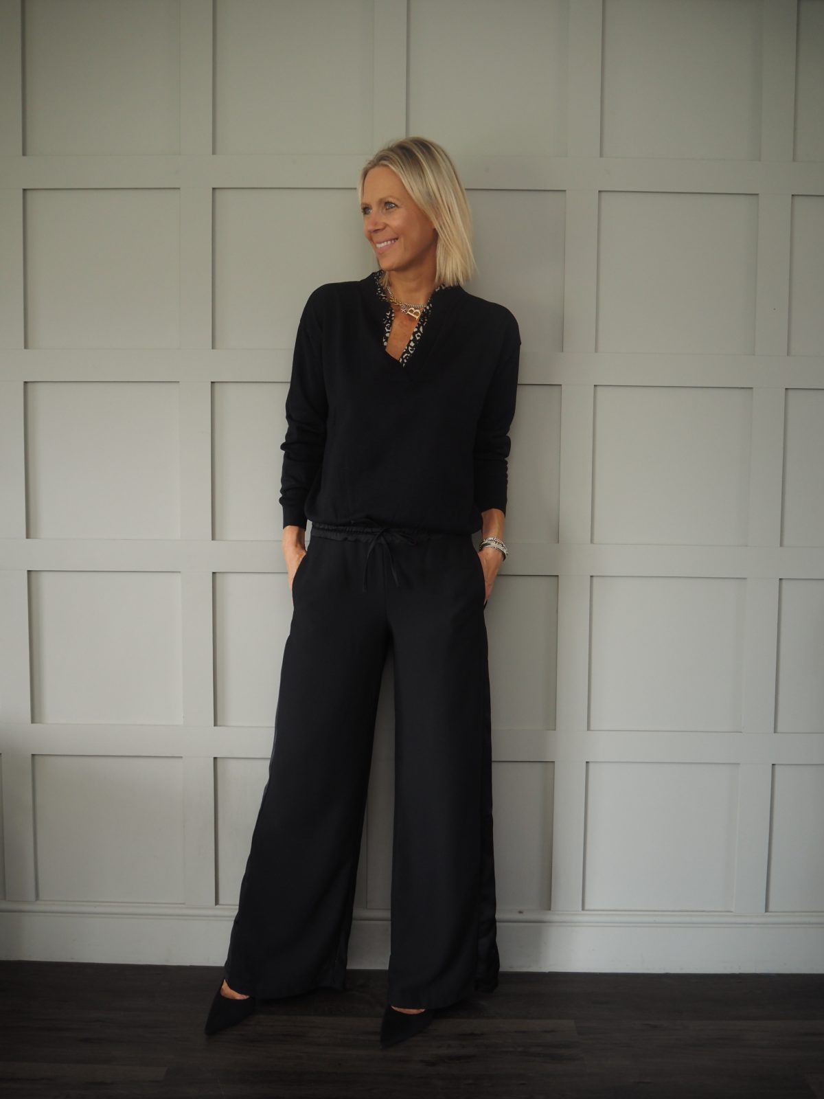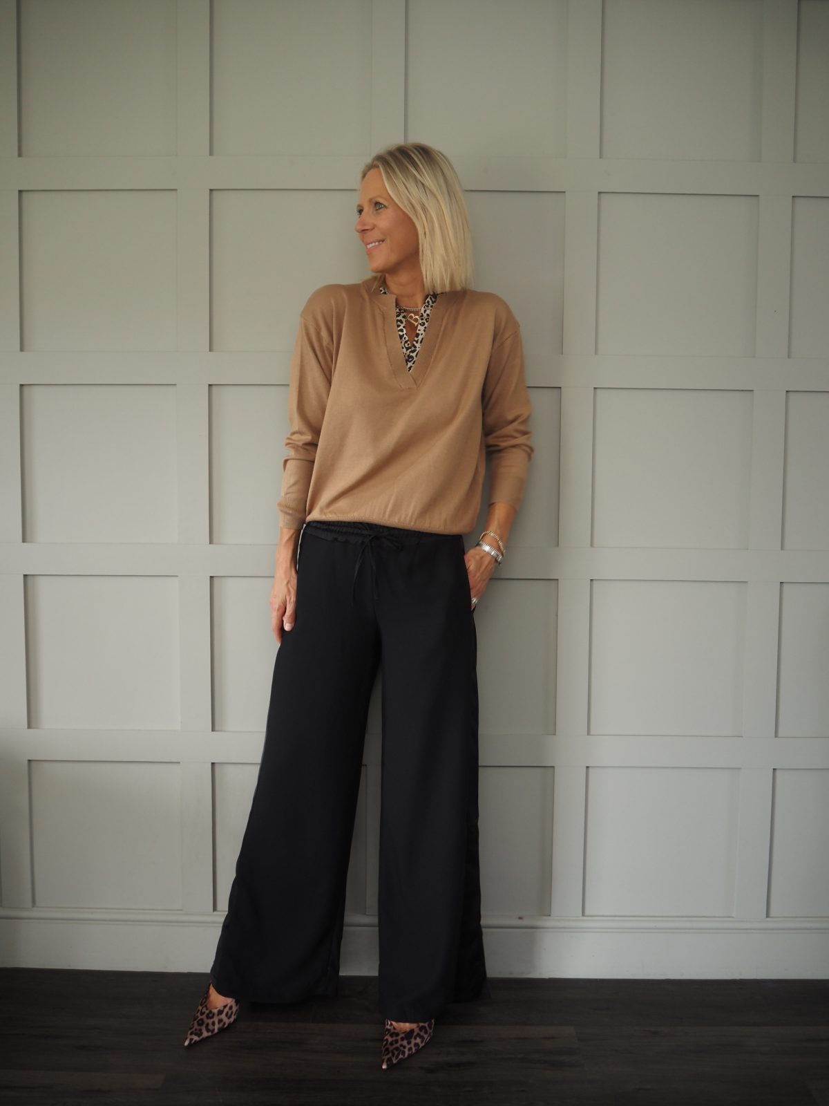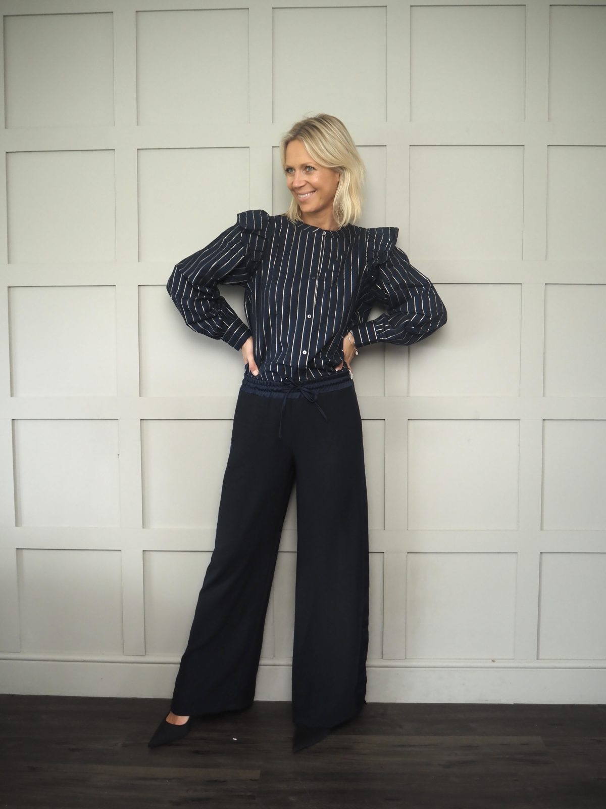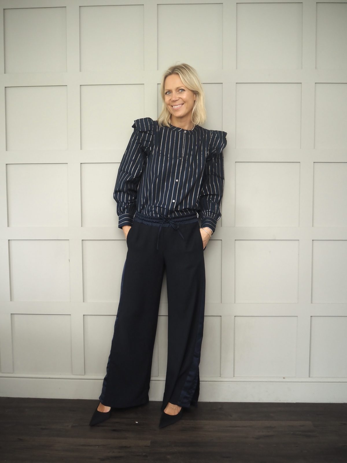 Worn with the Zander bomber jacket and the Tulip Striped Long Sleeved Blouse – Navy and Metallic Gold.