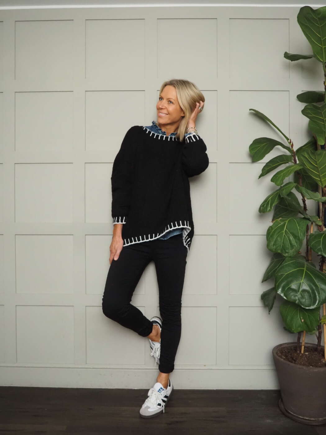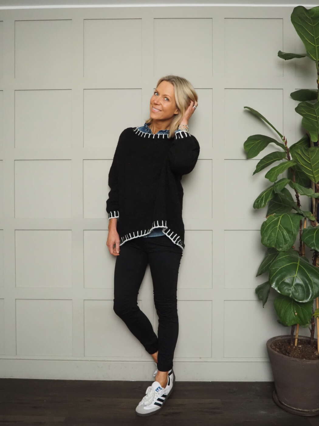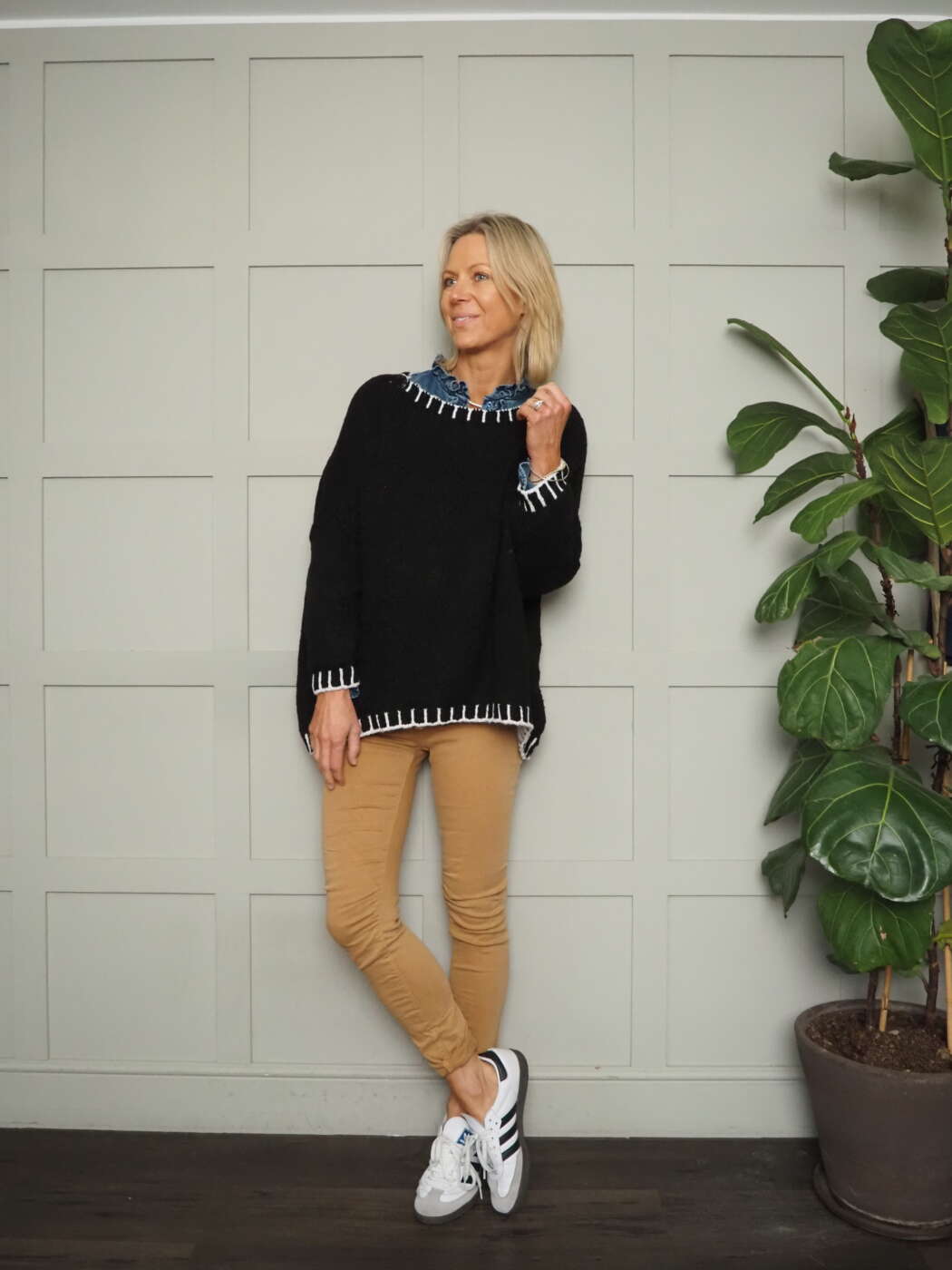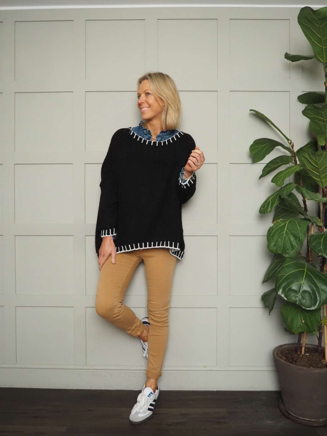 Worn here with the DARRAH Popcorn Knit Jumper – 6 Colours; the Kilky Denim Ruffle Detail Shirt and the Chloe Chunky Knit Cardigan – 3 Colours; the Kitti Scoop Neck Jumper – 23 Colours