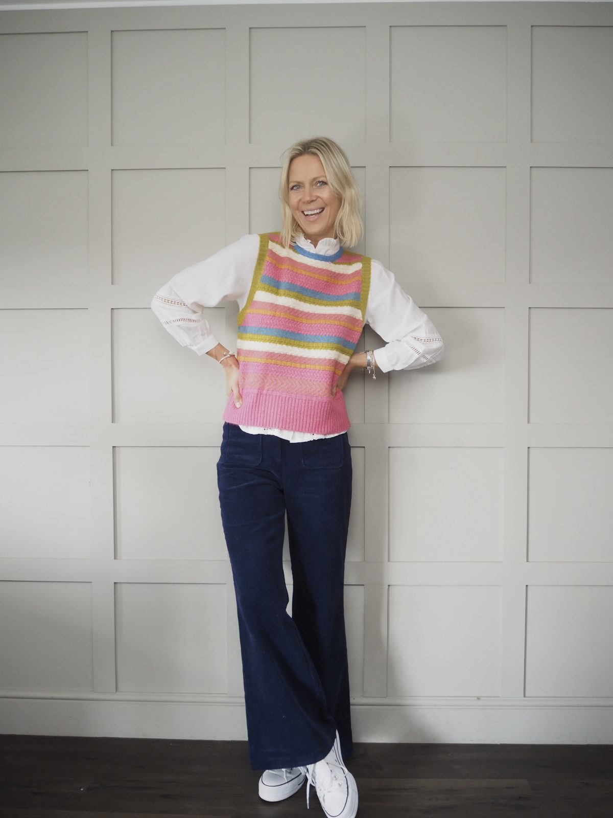 Wide legged, high rise 100% cotton, corduroy trousers, these are stunning and a fantastic piece for all year. Pockets at the front, enclosed faux pockets to the rear. A button and clasp fastening with a zip at the waist.