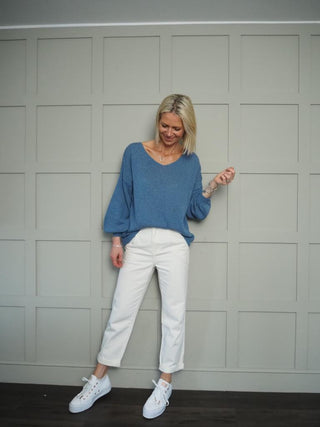 Lauren Cotton Trousers - Navy Blue/Off White Stripes