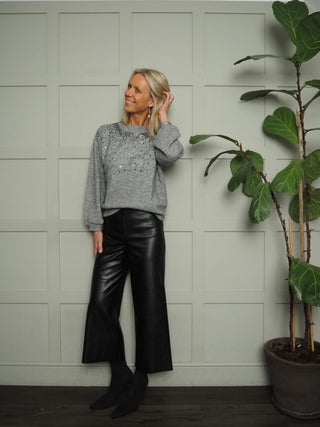 Dowie Faux Leather Wide Leg Cropped Trousers by Saint Tropez - Black