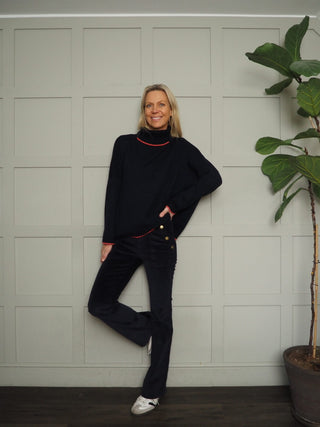 Tiggy Corduroy Boot Cut Trousers with Side Pockets - Navy Blue