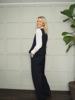 Darli Wide Leg Stretch Tailored Trousers - Navy Blue