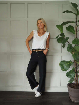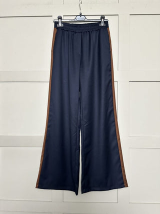 Netti Straight Leg Trousers - Navy with Camel Side Stripe