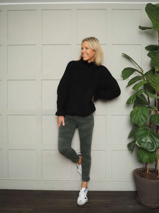 Softly Corduroy Trousers with Side Pockets by Emme - Black, Ecru