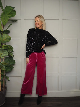 Zozo Sequin Trousers with Satin Side Stripe - Black