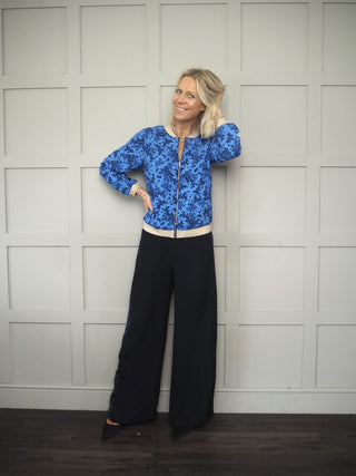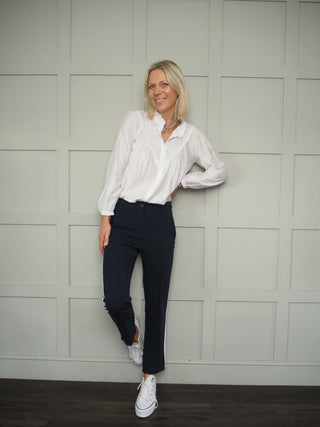 Martina Trousers - Navy with Contrasting Navy Satin Side Stripe