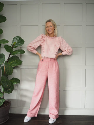 Wispa Cotton Wide Leg Trousers with Stripy & Cream Waistband - Blue