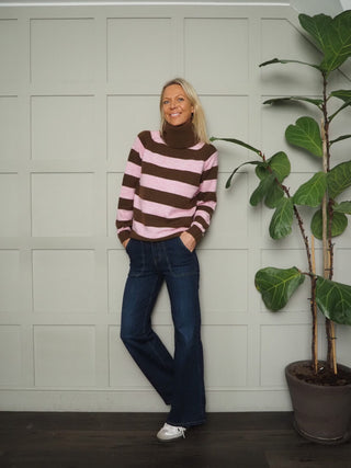 Henrietta Striped Polo Neck Jumper by Saint Tropez - Black/Ecru and Pink/Brown