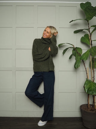 Netty Diamond Knit, Turtle Neck Jumper - Navy Blue and Winter White