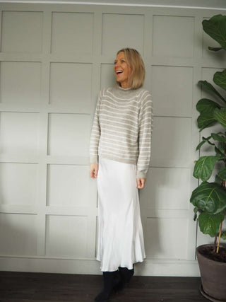 Becks Polo Neck Cashmere Mix Jumper - Oatmeal/Black Stripe