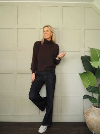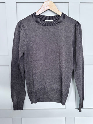 Kila Lurex Jumper with Pleated Shoulders by Saint Tropez - Chocolate/Gold Lurex
