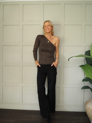 Dagny Shimmer One Shoulder Ribbed Top By Saint Tropez - Chocolate/Gold Lurex
