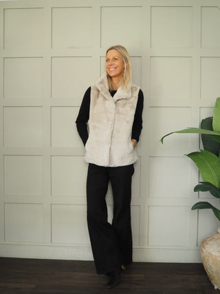 Lison Faux Fur Gilet with Popper Fastenings by Rino & Pelle - Birch