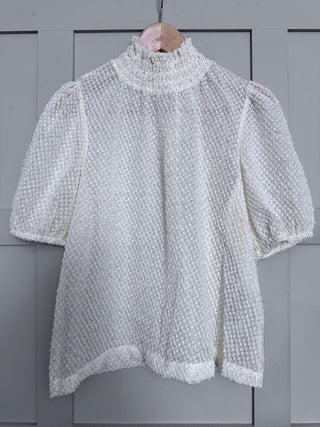 Helma Short Sleeve Blouse with Elasticated High Neck By Saint Tropez - Ecru, Navy Blue