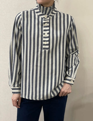Dixie Stripe Blouse with Pleated Collar - Blue