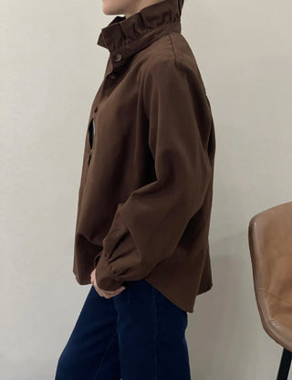 Grace Boucle Quilted Jacket with Pleated Collar - Chocolate, Ecru, Khaki
