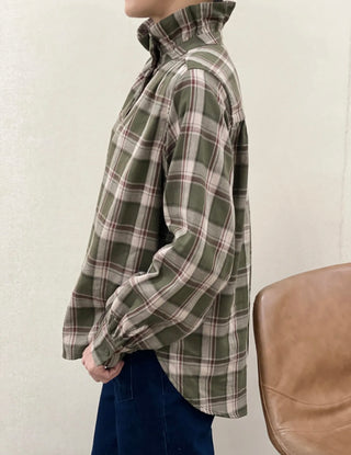 Forest Reversible Check Blouse with Pleated Collar - Khaki
