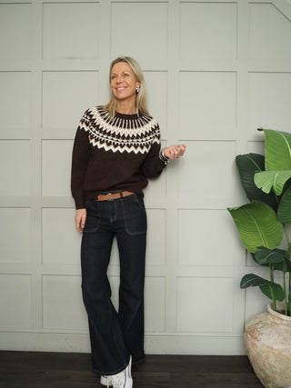 Evan Blouse with Peter Pan Collar with Rick Rack Detail - Chocolate