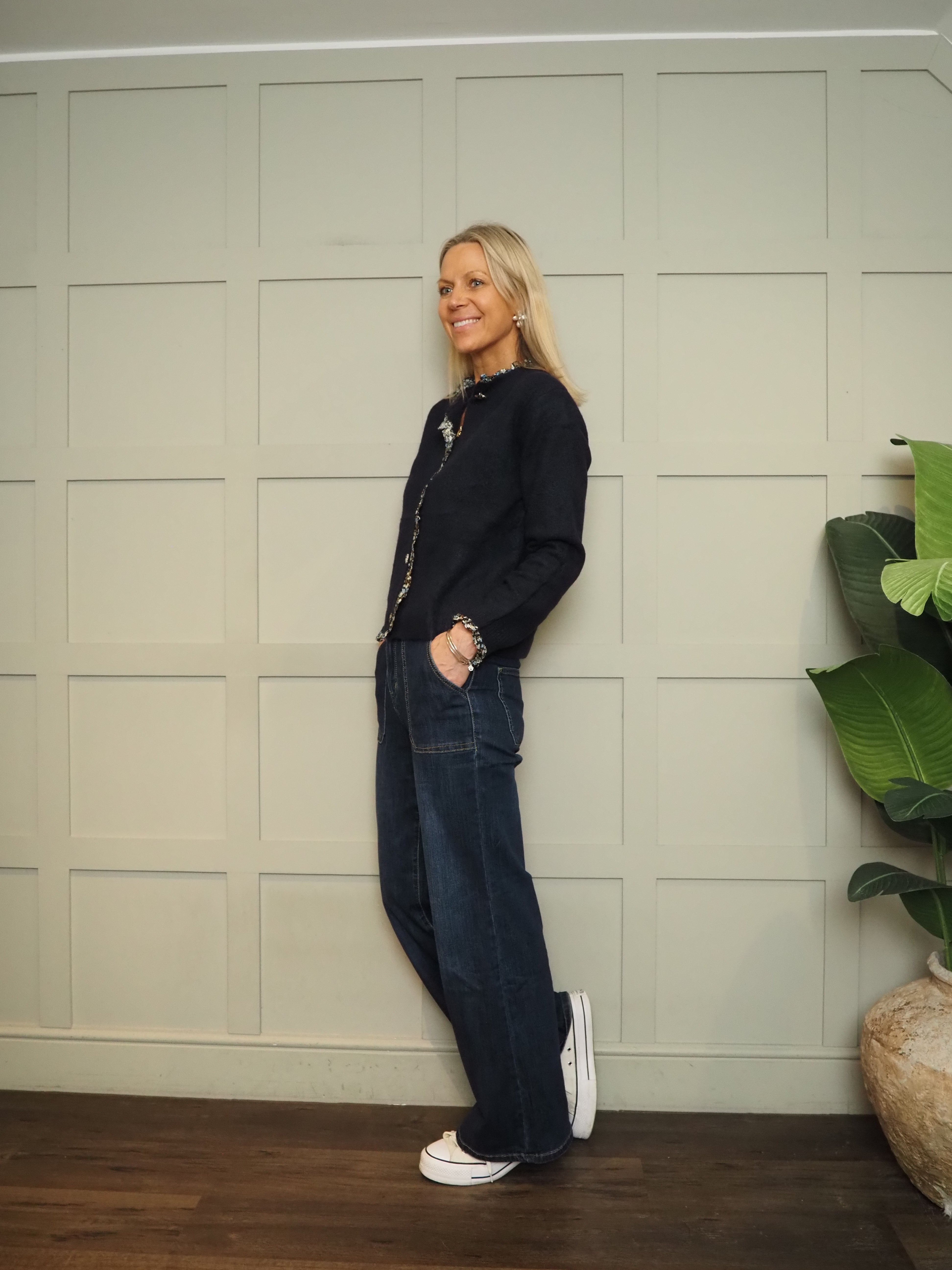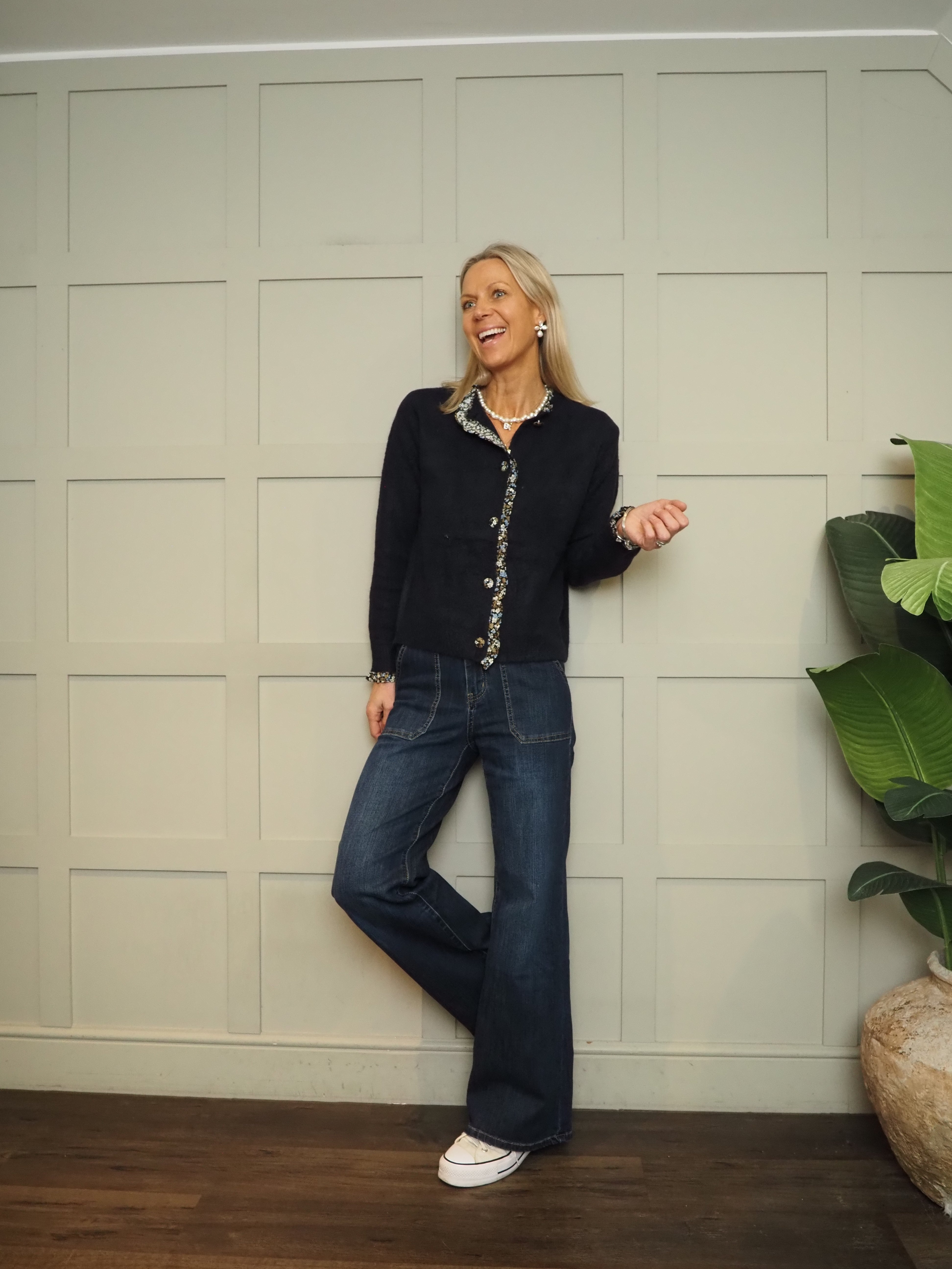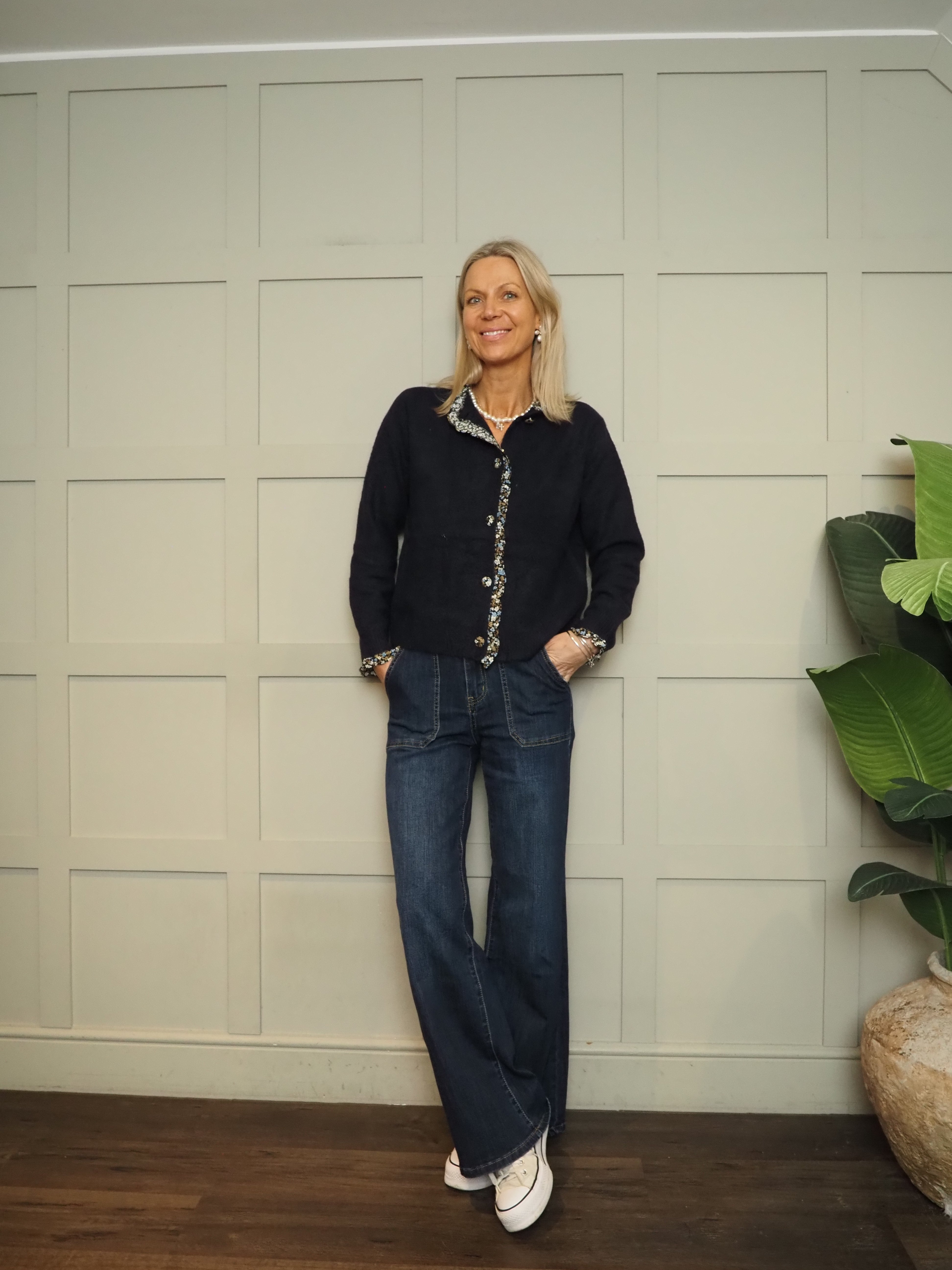 The sister cardigan to the Oxford Cardigan the Cambridge is such a fabulous wardrobe addition. It can be styled with jeans, trousers or a skirt. It is so soft and comfortable to wear and has floral print ruffle details on the collar, cuffs and alongside the buttons. It also has floral print button fastenings.