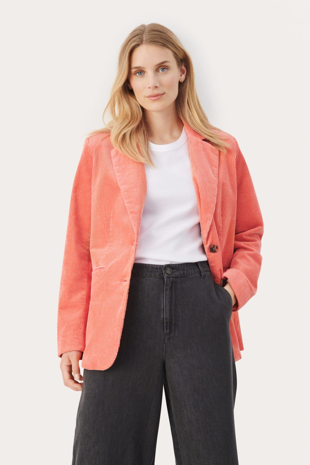 Chrisanne Single-Breasted, Corduroy, Lined Blazer by Part Two - Coral, Ecru, Navy Blue, Walnut