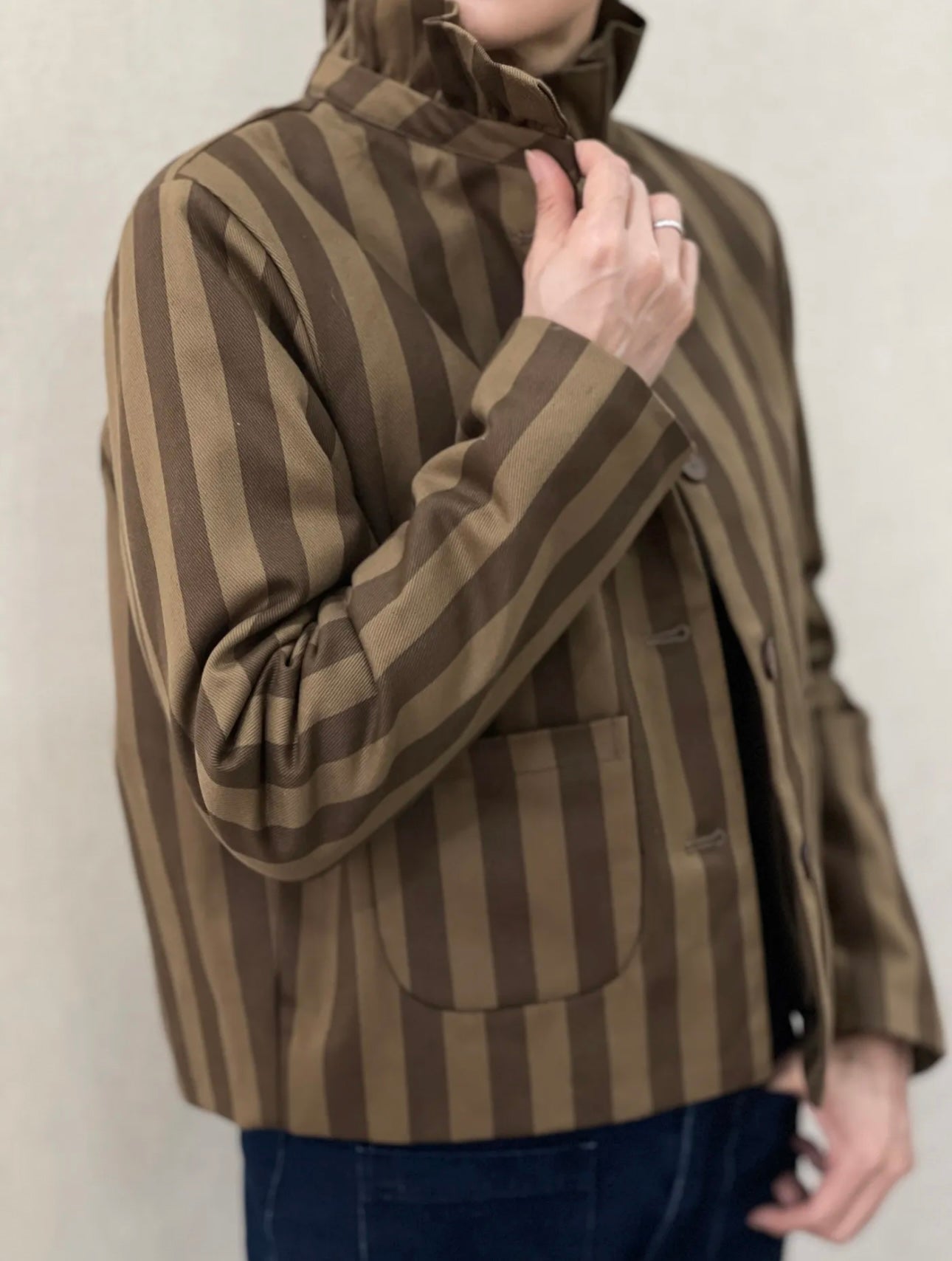 Hyde Stripe Quilted Jacket with Pleated Collar - Chocolate, Navy