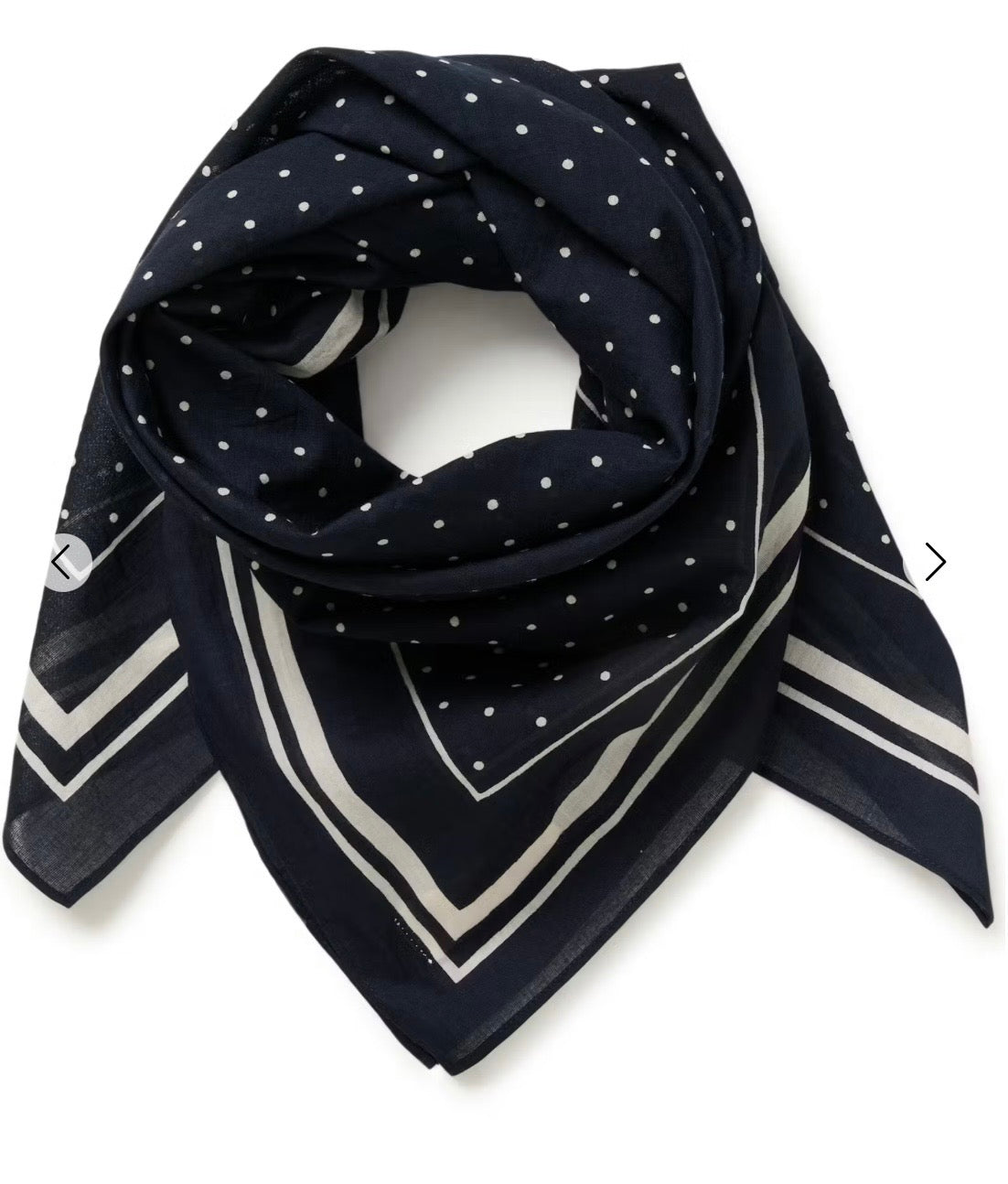 A chic little wardrobe addition. These large cotton, seasonless scarves are the perfect way to finish an outfit. They look great worn with a T shirt and blazer, a knit or with a blouse and can be tied in various ways to give different looks.