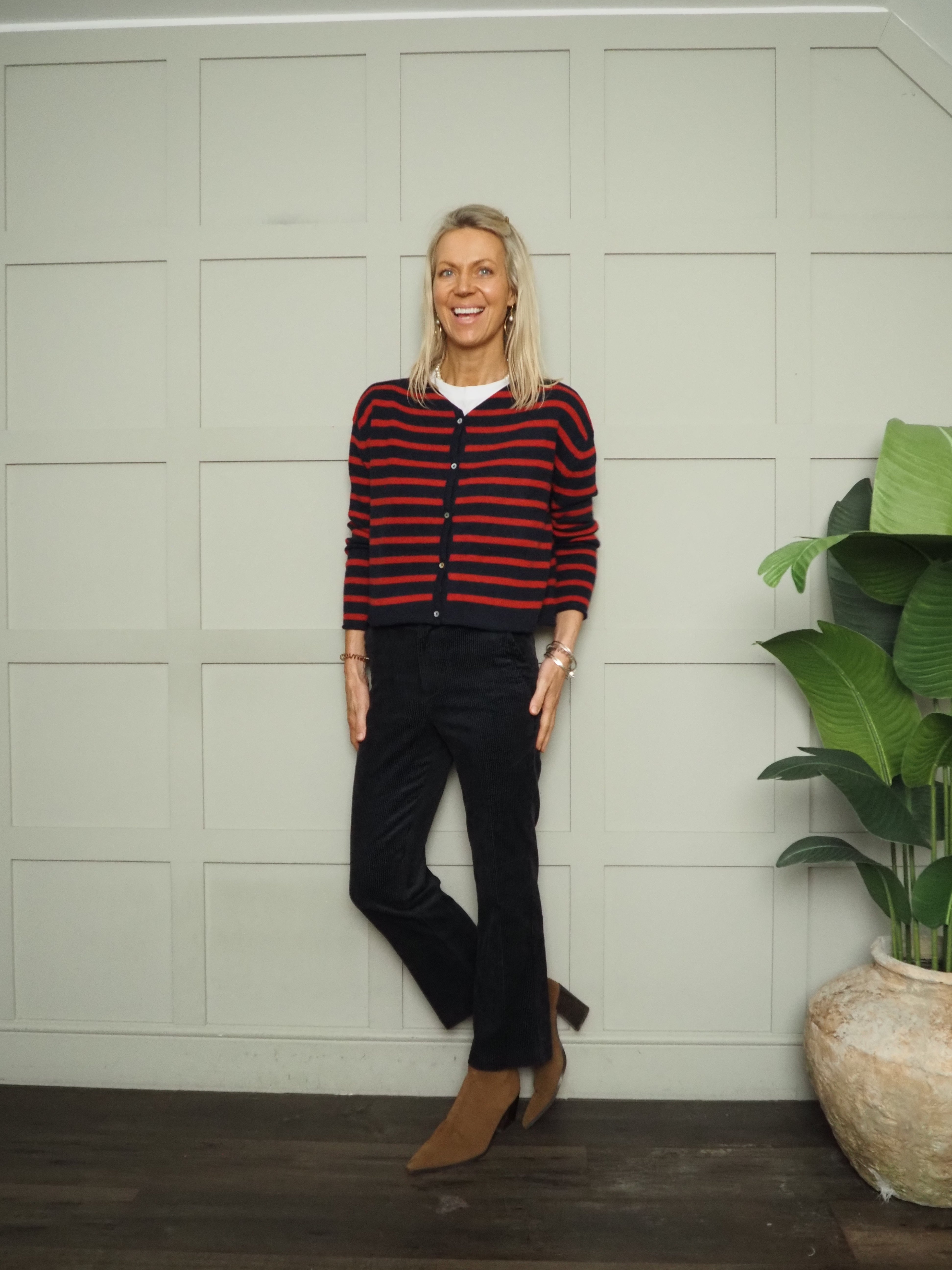 This super soft, striped cashmere mix cardigan is a perfect piece to wear over a blouse or T shirt and works all year round. It has button fastenings and can be worn buttoned up or open.
