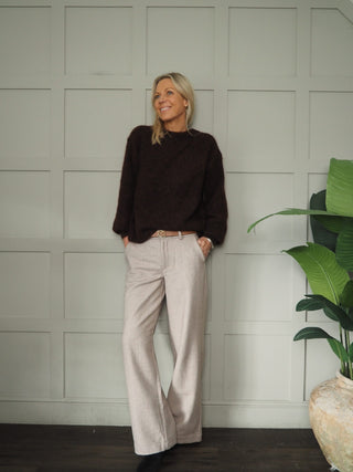 Tarrina Wool Mix Herringbone Trousers by mbyM - Burgundy, Oatmeal