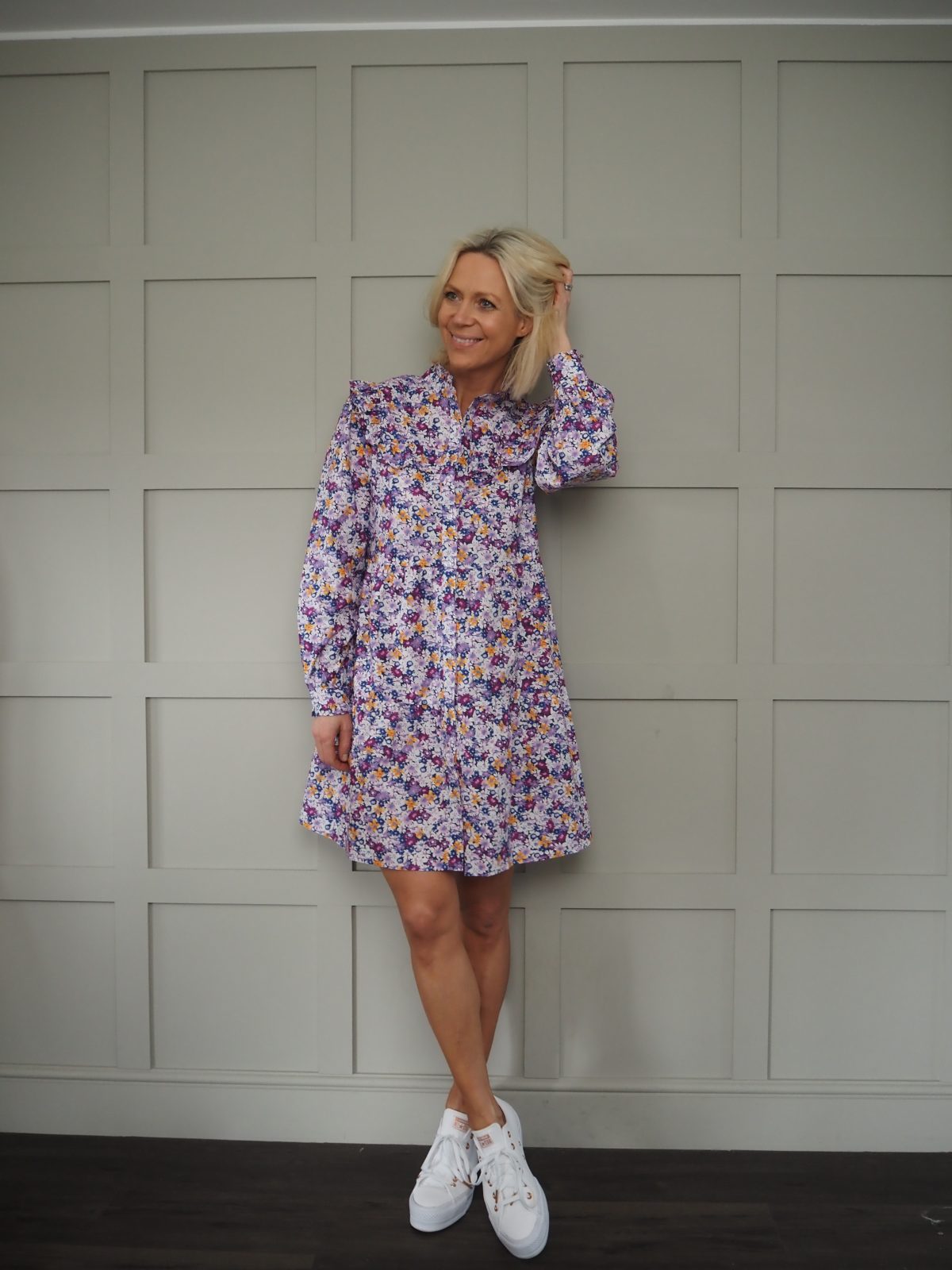Sizing: Small (8-10), Medium (10-12) and Large (12-14). Becky is a size 8-10, 5’9″ tall and wears the Small.
