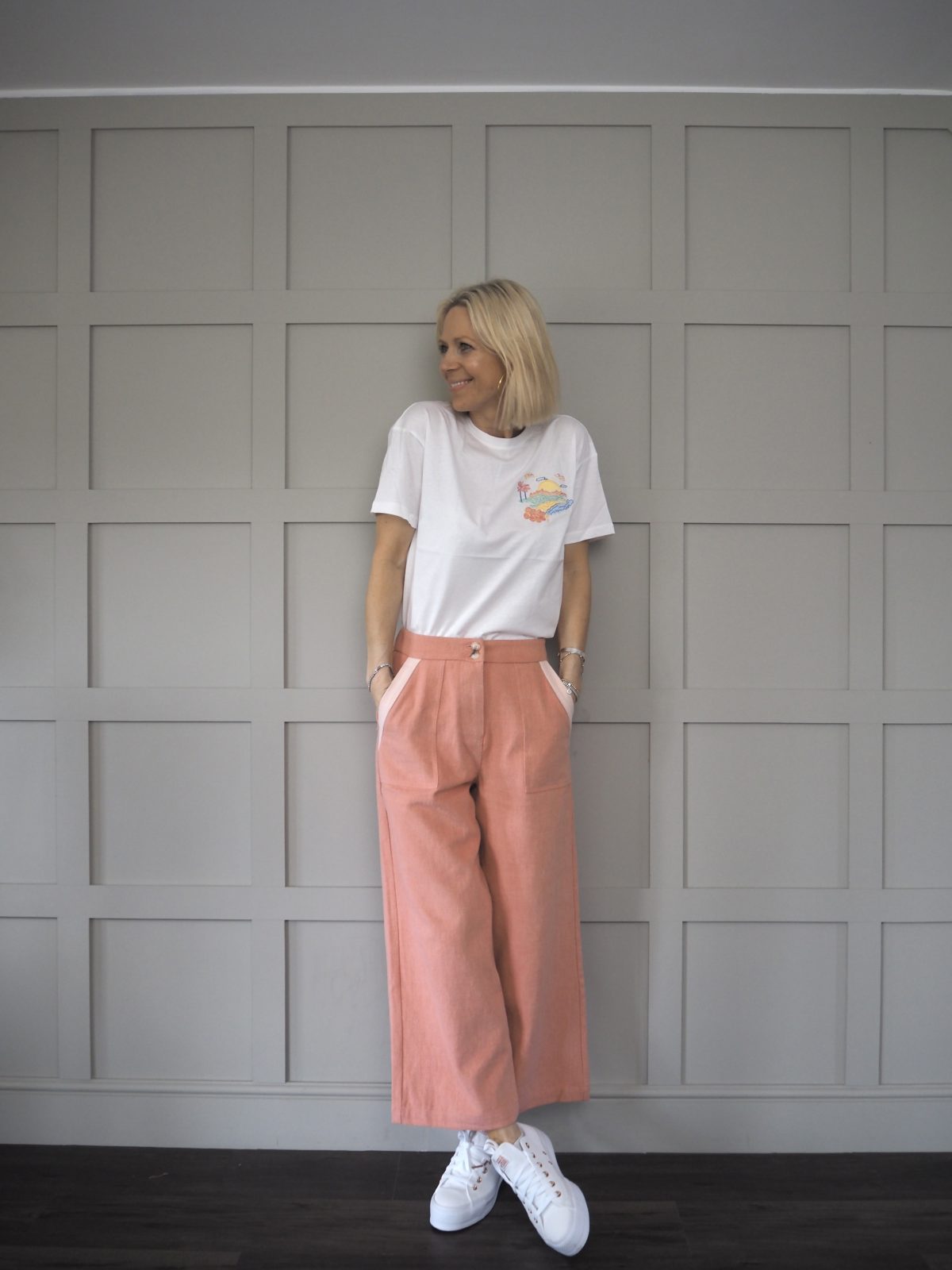Worn here with pink Anya cropped wide leg soft jeans.