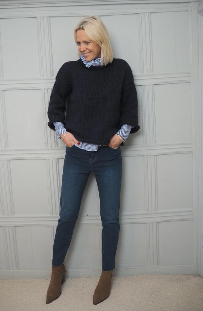 Worn here with The Make Shed Cheshire Roll Neck Sweater & The Make Shed Blue Ruffle Neck Blouse.