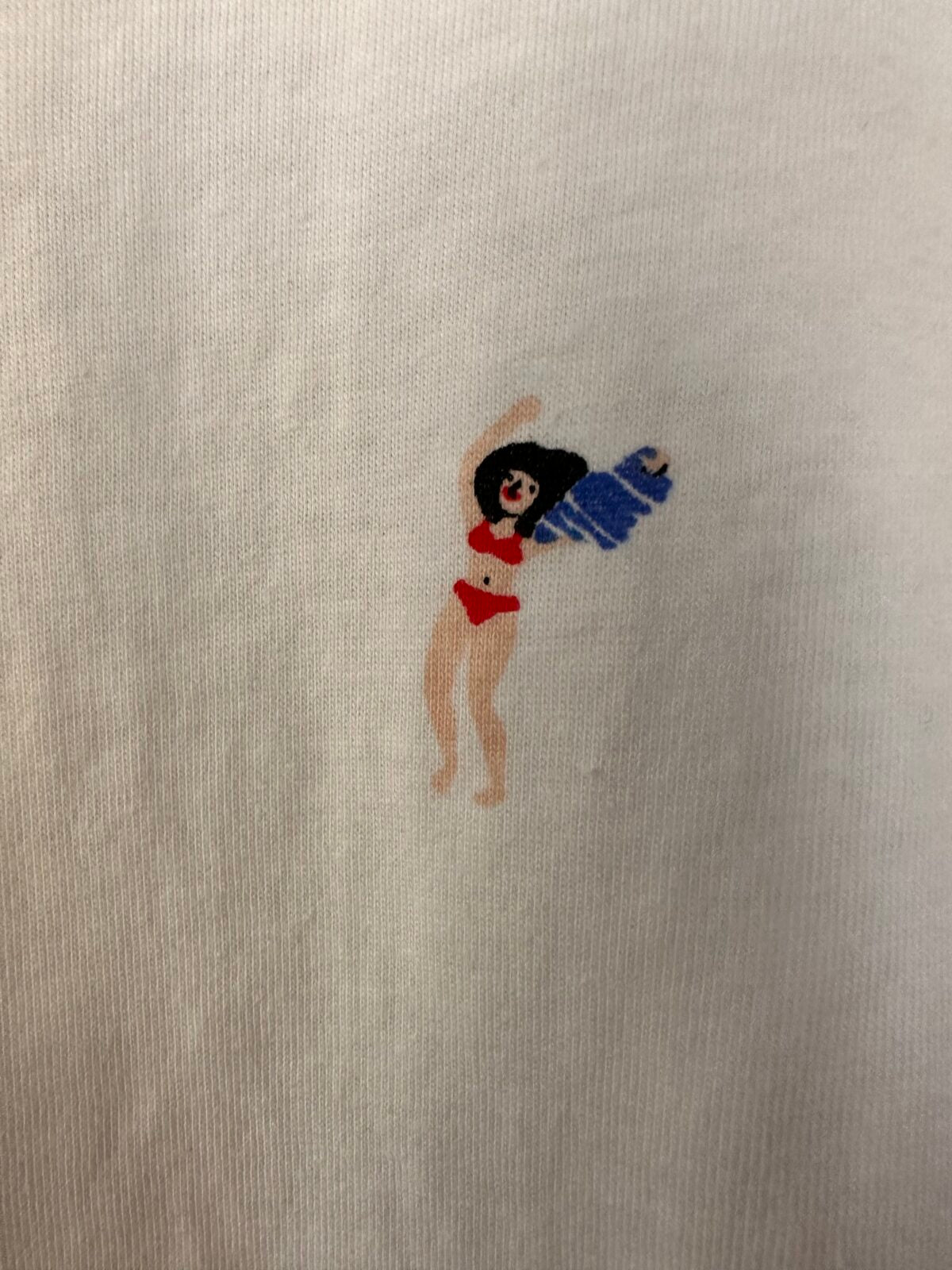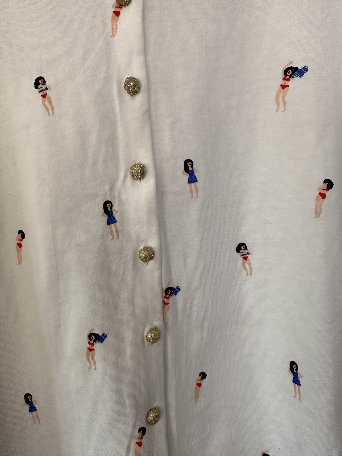 Available in Off White with a cute little print of ladies in dresses and bikinis.