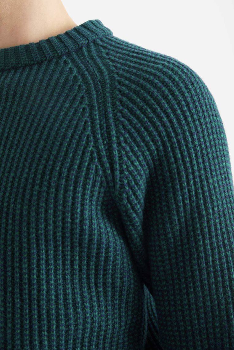 Men's Duo Round Neck Chunky Knit Jumper - Green/Navy, Ochre/Camel