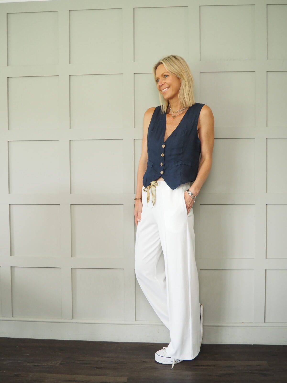 Worn here with the Bricks and Stitches LUC Shorts – 2 colours and the CLAIRI Trousers – 2 colours and the MARGOT trousers. Denim Blue worn here with the new KINSLEY Lace Sleeved Silky Top – 3 Colours