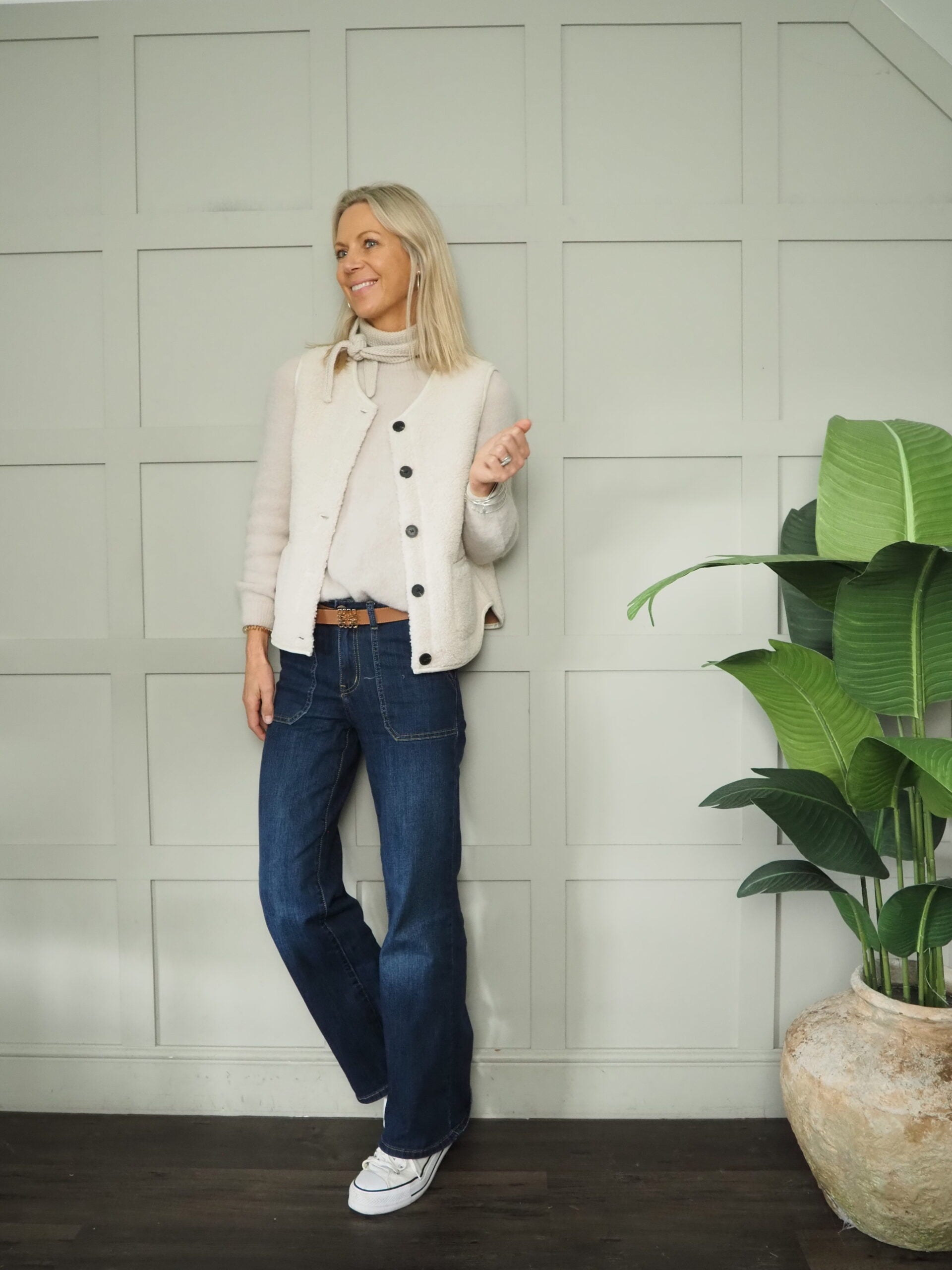 Worn with the Beela Soft Crew Neck Jumper, Alpaca/Wool Mix, Best Seller – 20 Colours and the Grai Denim Jeans – 6 Colours