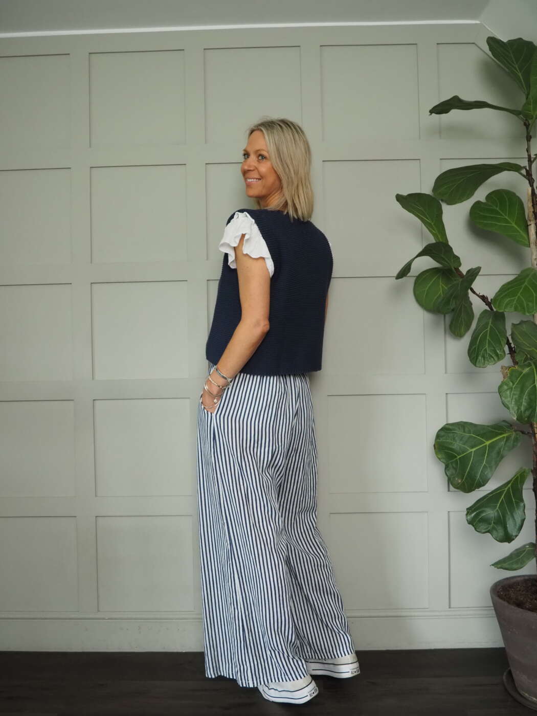 Worn here with the Grai Jeans – 5 Colours and the Gwendina Blouse – 2 Colours and the Simba Sleeveless Blouse – Off White/Navy Minx Striped Wide Leg Linen Mix Trousers – 7 Colours and the Zoe 100% Linen Top – 10 Colours