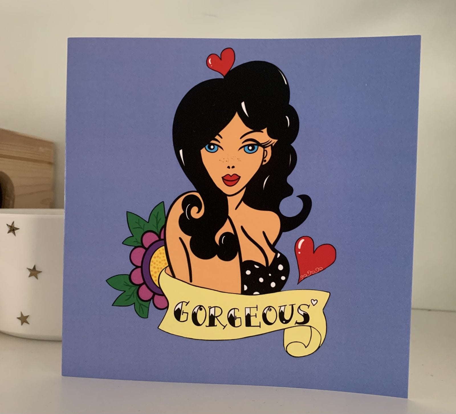 Colour printed greetings card from a hand drawn doodle.The cards are blank inside for you to personalise with your own message.The cards are printed on 300 gsm uncoated paper which has a soft finish and tactile quality and have a finished folded size of 155mm x 155mm.Every card comes with a white envelope and in a clear protective cellophane sleeve to keep it clean and fresh on its journey to you.