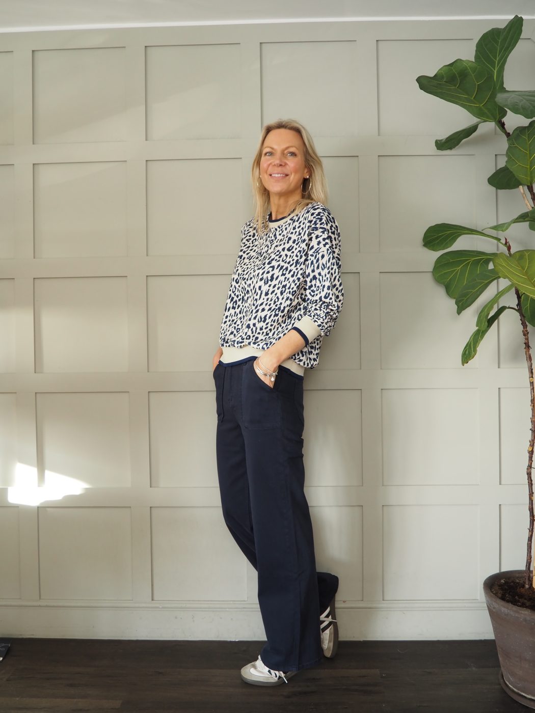 Navy Blue worn here with Pettra Leopard Print Lightweight Sweatshirt – 5 Colours