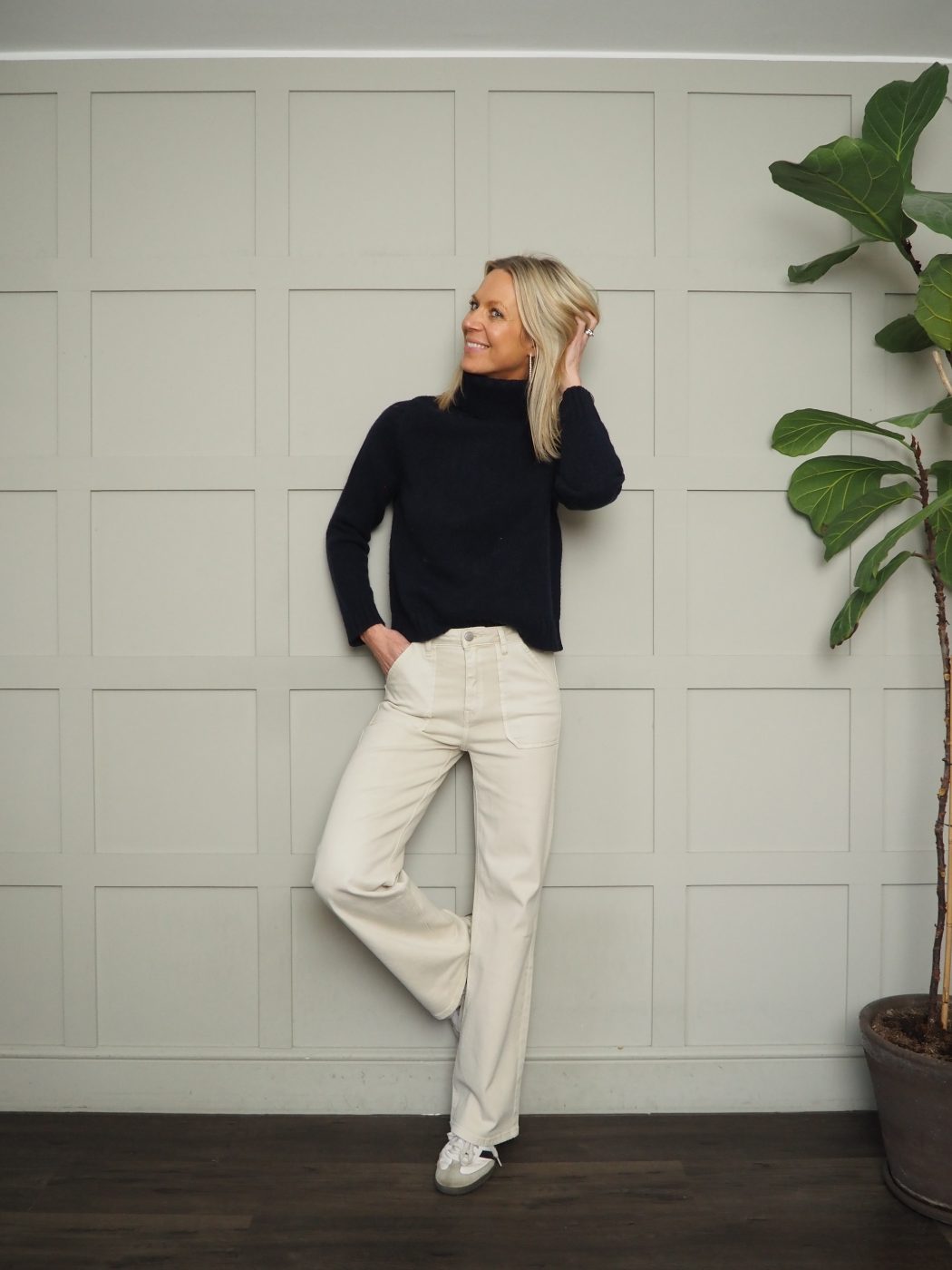 Sizing: available in XS (6-8), S (8-10), M (10-12), L (12-14) and XL (14-16). Becky is a size 8-10 and 5’9” tall and takes the Small. Please note the white Grai trousers come up slightly smaller than the denim so we advise to size up in those.