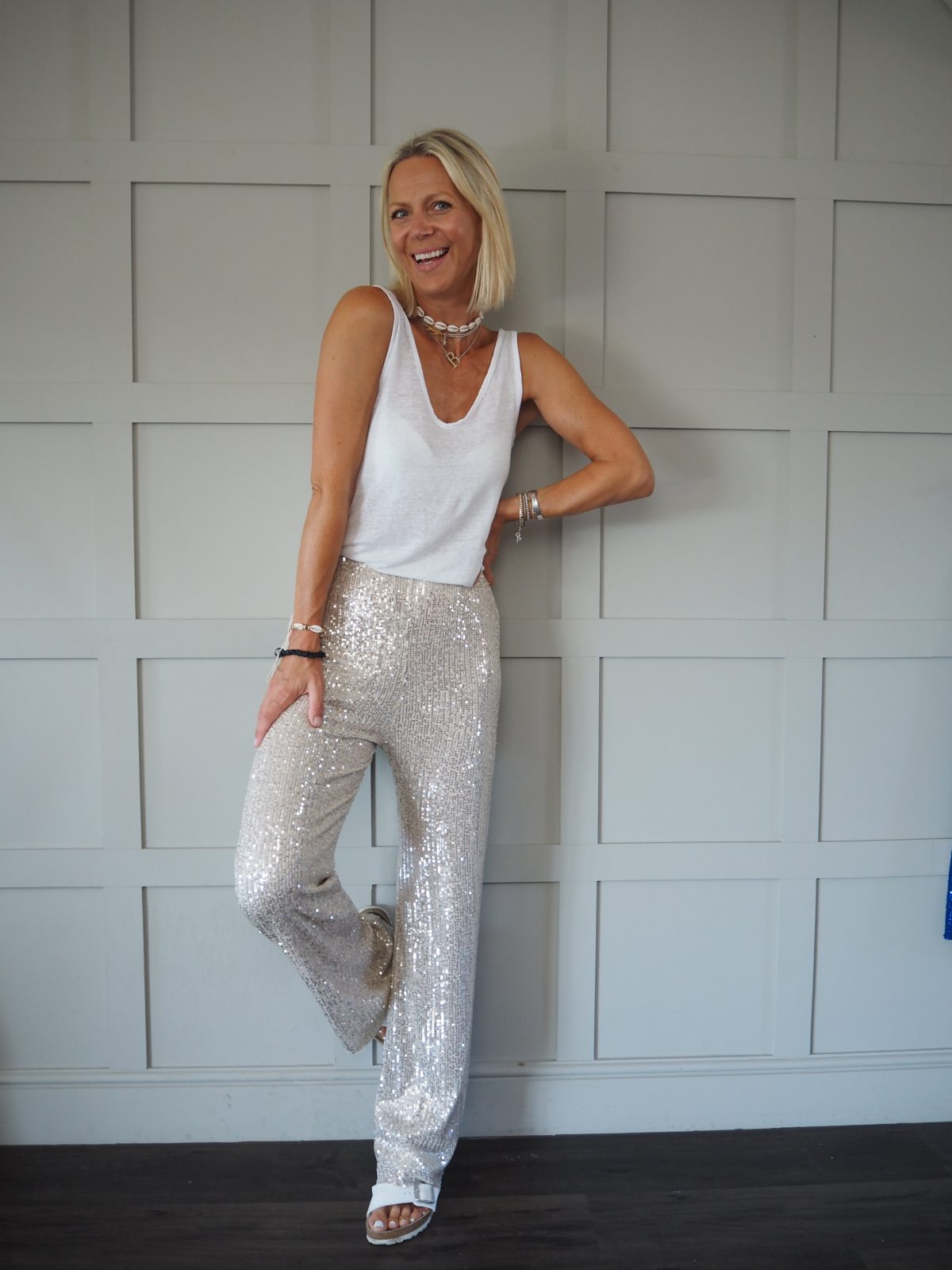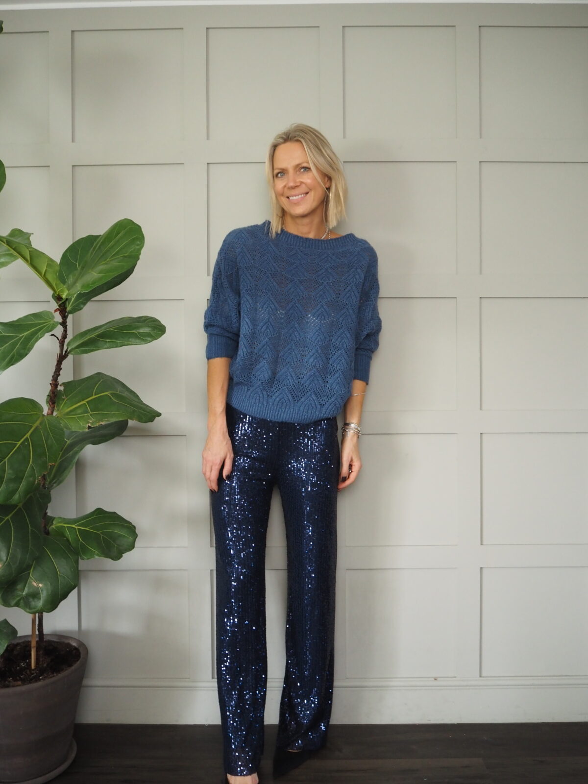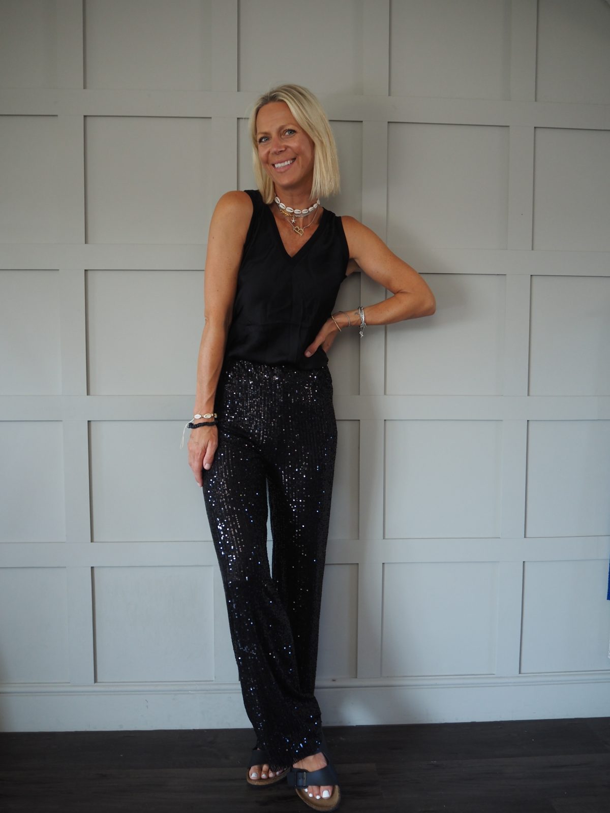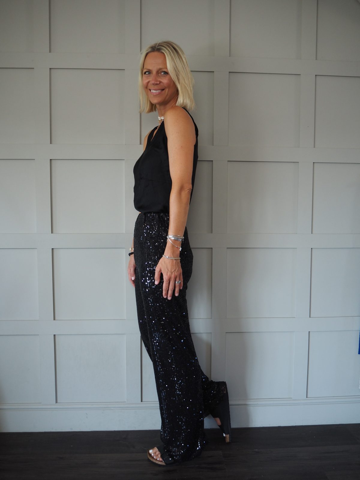 Fabulous and super comfortable sequin trousers with elasticated waist. Fully lined. Can be worn dressed up with heels and a blazer or more casually with trainers and a t shirt. Perfect for festivals and parties.