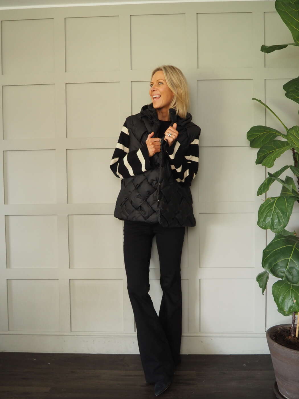 Worn here with Shania Jeans – 3 Colours Terri roll neck – 4 colours and Buddy Striped Jumper – Black/Ecru
