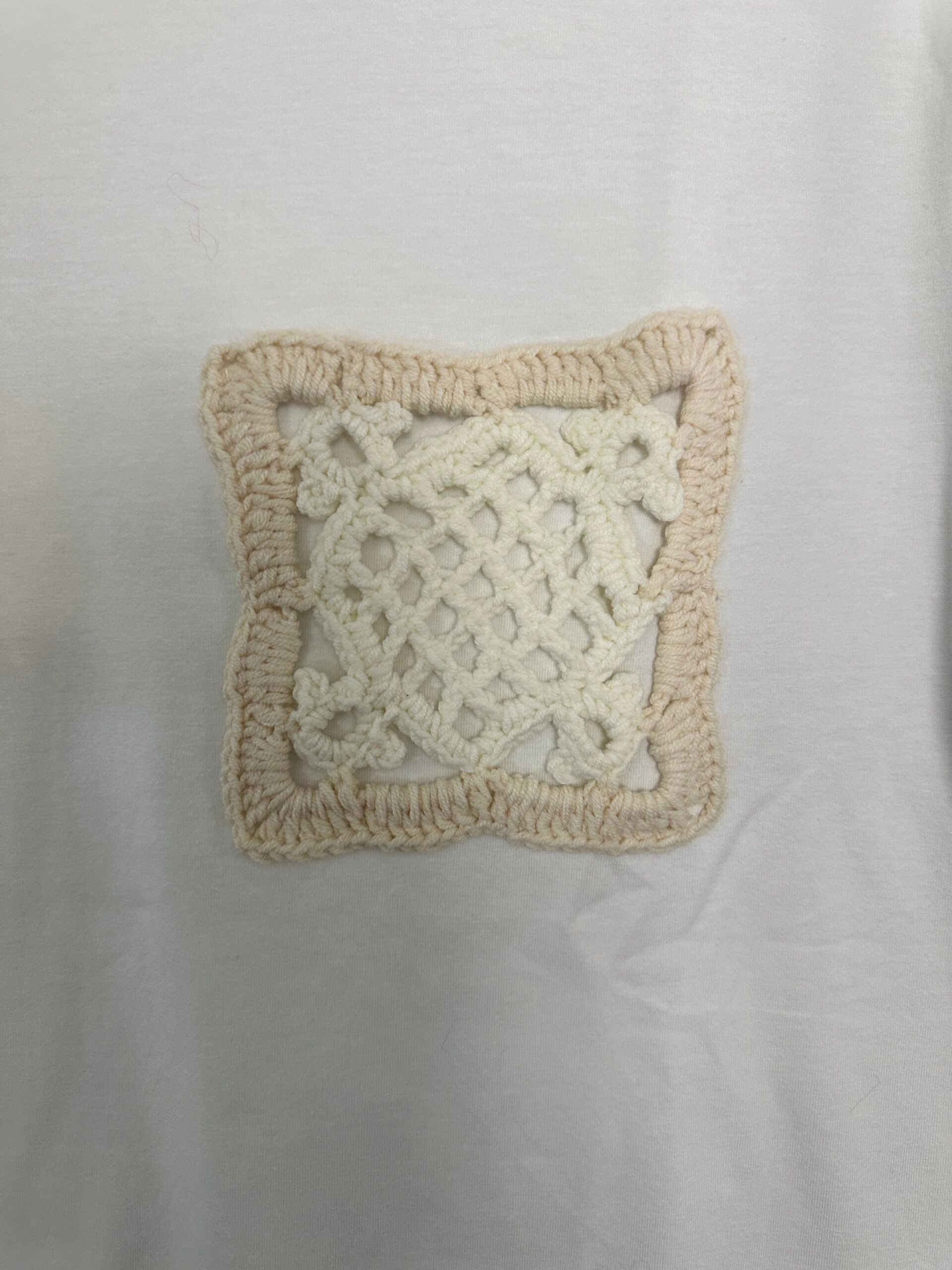 The Indie T-shirt is a classic T shirt with a lovely crochet pocket detail on the chest. Perfect layered under a blazer and great worn alone with jeans and shorts.