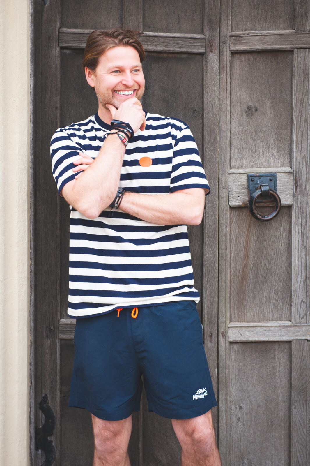 These lined swim shorts are an essential addition to your spring/summer wardrobe – from the fab, sustainable and ethical brand, LOREAK MENDIAN. Navy blue in colour, they have a neon orange drawstring and a white logo on the left leg. Pockets to the side and one pocket to the back with an orange velcro fastening.
